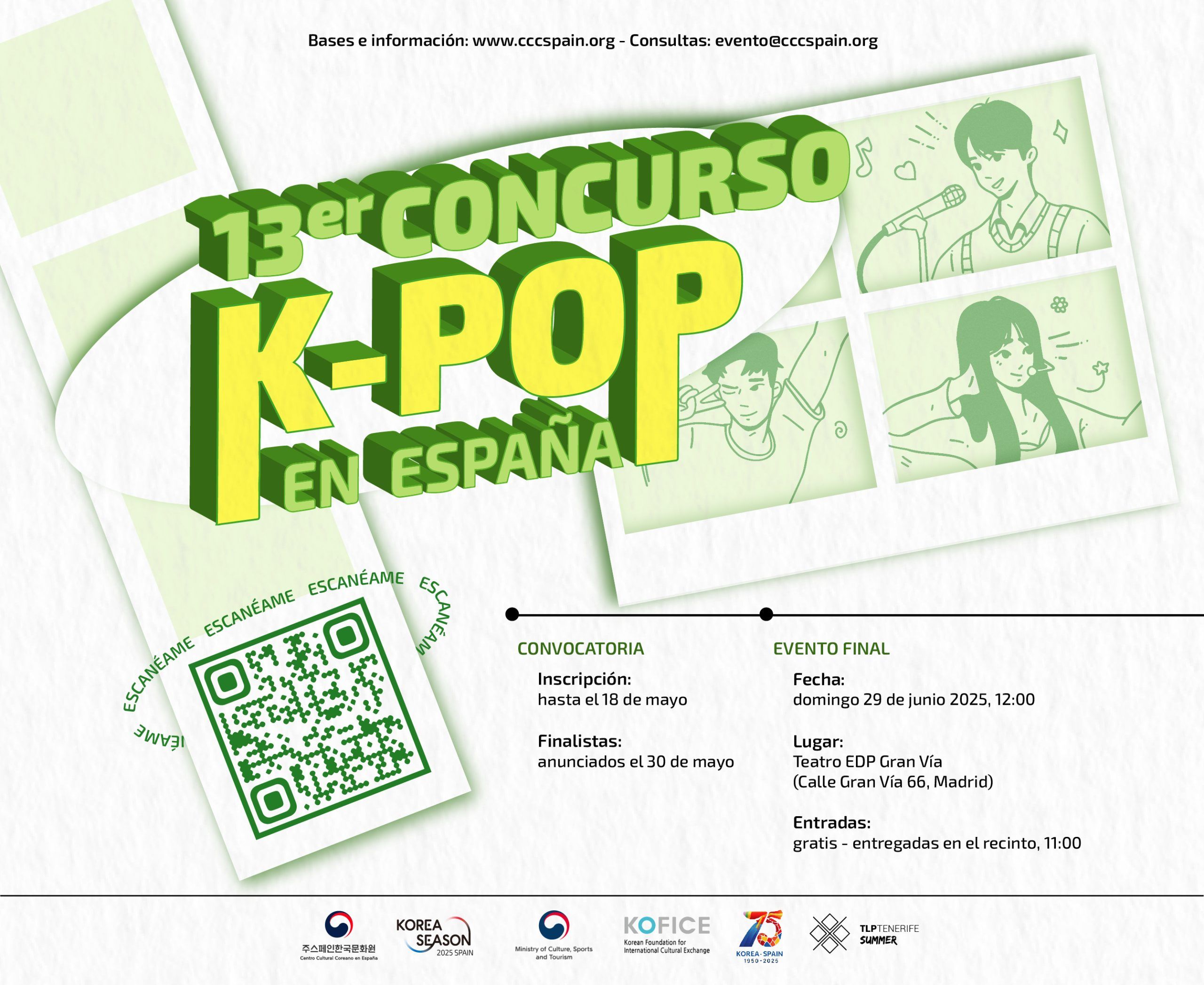 El 13er Concurso K-Pop en España no solo busca resaltar el talento joven y emergente, sino también fortalecer los lazos de amistad entre Corea y España, en un encuentro que celebra la música, la cultura y una pasión compartida. El Centro Cultural Coreano invita a todos los amantes del K-Pop y de la cultura coreana a sumarse a esta fiesta del talento.